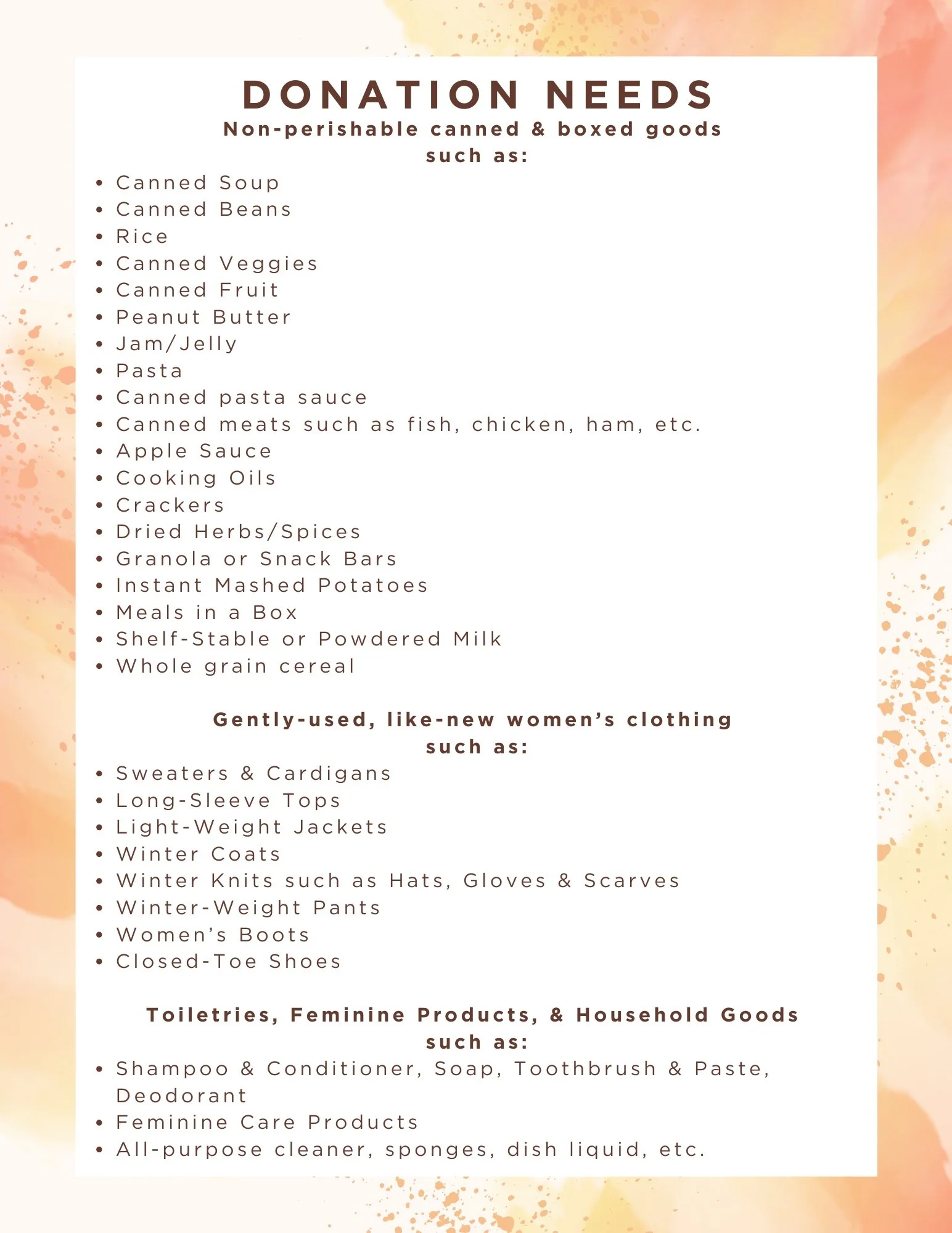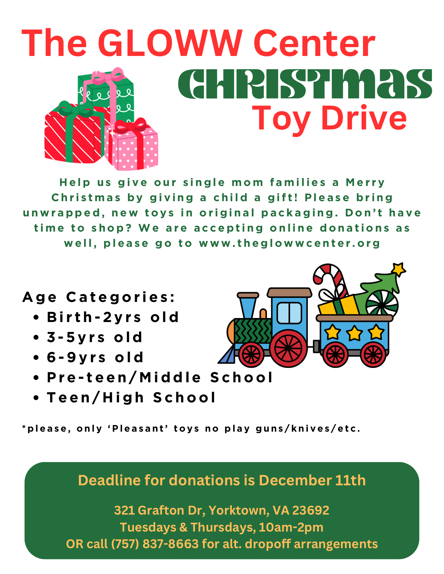 We at The GLOWW Center want to say THANK YOU!! Thanks to your donations, we are able to provide for our single mom families: Food, Hygiene Products, Baby & Toddler Diapers, and Clothing. Thank you for helping feed and clothe these single-mom families with dignity and for God’s glory.